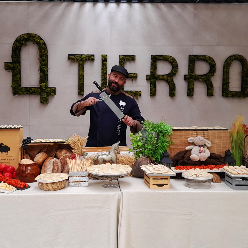 En CASTRVM – ERAT seleccionamos con esmero una variedad de quesos artesanales, desde los más suaves hasta los más intensos, acompañados de una selección de frutas frescas, frutos secos y panes especiales que realzan cada sabor.